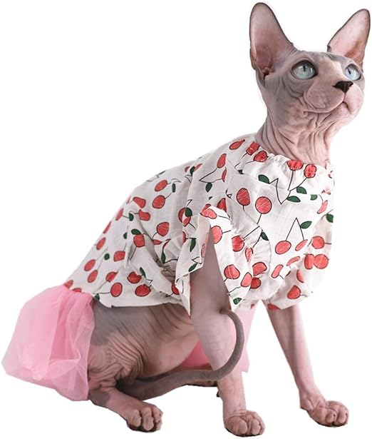 Kitipcoo Sphynx Robe D Ete En Coton Respirant Sans Poils Pour Chat Motif Cerisier Avec Manches Chats Et Petits Chiens L 7 7 9 9 Lbs Amazon Fr Animalerie