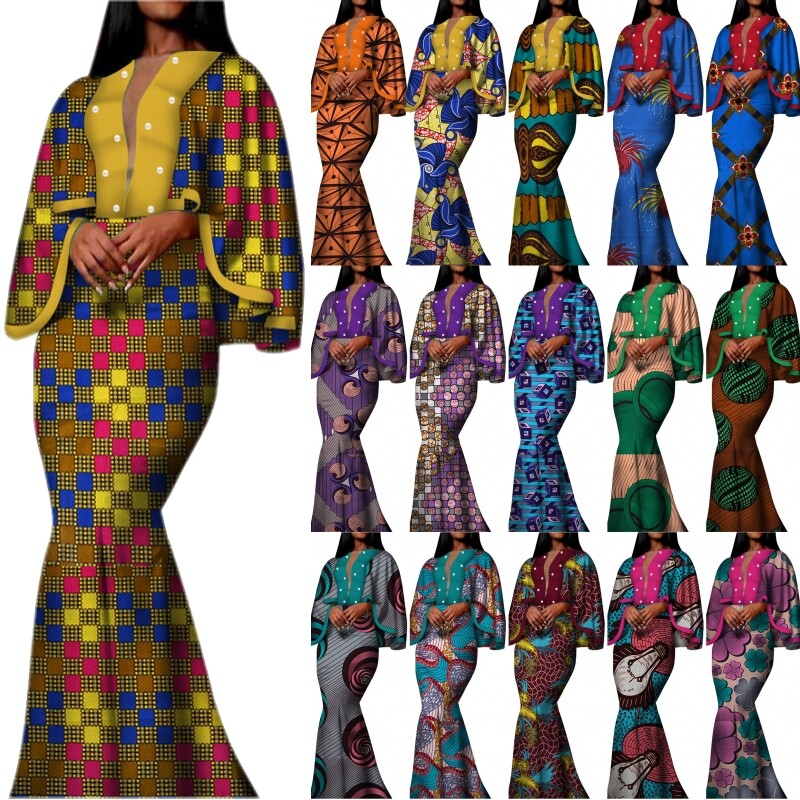 Les Femmes Africaines Cape Robe Bazin Riche Ankara Coton Cire Imprimer Parti Robe Vestidos Ebay
