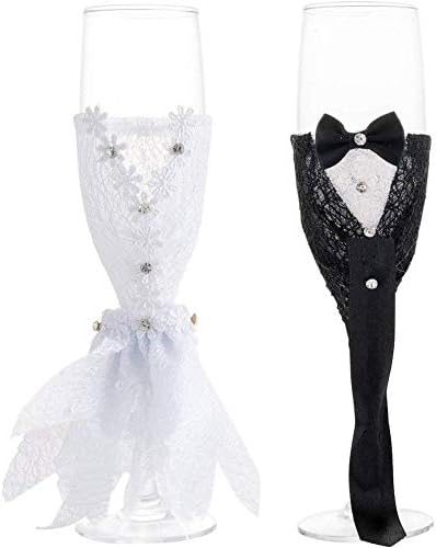 Longbble Lot De 2 Flutes A Champagne De Mariage Avec Robe De Mariee Faite A La Main Cadeau De Mariage Pour Couple De Maries Fiancailles Amazon Fr Cuisine Maison