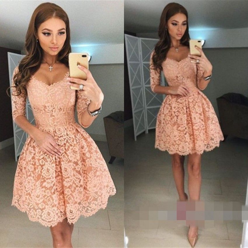 Acheter Date V Cou Demi Manche Mini Courte Robes De Soiree En Dentelle Sweet 16 Robes De Graduation Belle Robes De Soiree De Bal Robe De Fiesta De 65 43 Du Weddingpalace Dhgate Com
