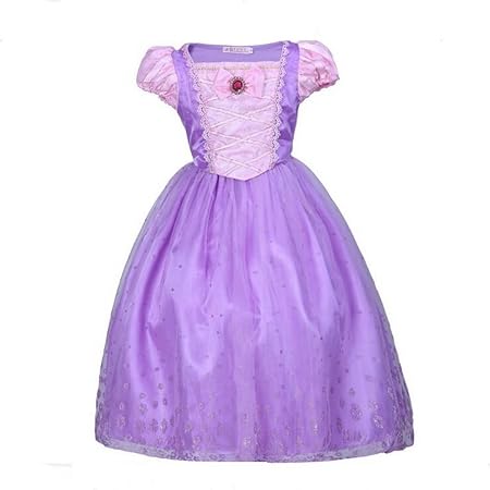 Pour Fille Costume De Princesse Raiponce Robe A Manches Bouffantes Robe Cosplay Halloween Fete D Anniversaire Robe Deguisement Rose Rose Amazon Fr Bricolage