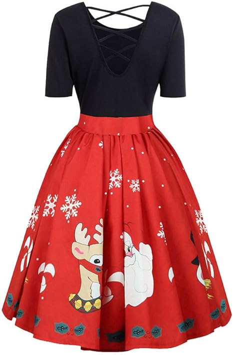 Keerads Femmes Vintage Robe De Noel Pere Noel Impression Robe Jupe De Soiree Mode Elegant Robe Dames Robe Sans Manches Robe De Noel Lotus Jupe Amazon Fr Vetements Et Accessoires