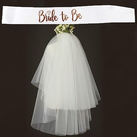 Innobase Bride To Be Ceinture En Satin Et Voile De Mariage Avec Peigne Pour Douche Nuptiale Hen Accessoires Decorations De Fetes De Soiree 2 Pieces Bazis Az