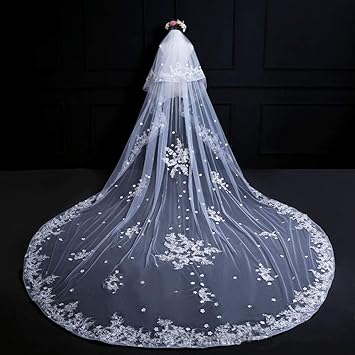 Yagfeng Voile De Mariee Mariage Voile Blanc Ivoire Longue Coiffure Elegante Douce Voile Chale Dentelle Dentelle Brodee Robe Cathedrale Boule Tulle Porter Des Accessoires De Mariage Amazon Fr Cuisine Maison