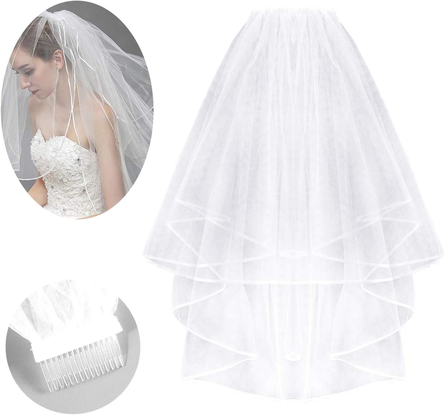 2 Niveau Bordure En Dentelle De Mariee Mariage Fingertip Longueur Veil Simple Tulle Nuptiale Veils Femmes Longue Cathedrale Veil Veil Chapelle Avec Peigne 138 Pouces Amazon Fr Beaute Et Parfum