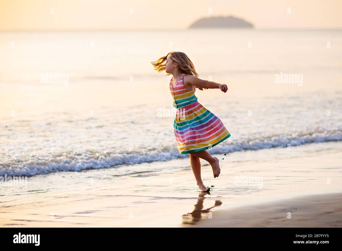 Little Girl On Beach In Silhouette Banque D Image Et Photos Alamy