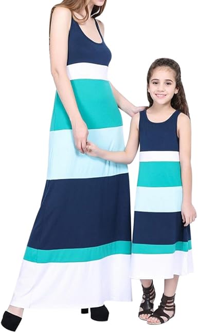 Decha Boho Ete Maxi Robe Rayee Longue Famille Sans Manches Dress Casual Plage Vacances Pour Parent Enfant Mere Et Petite Fille Amazon Fr Vetements Et Accessoires