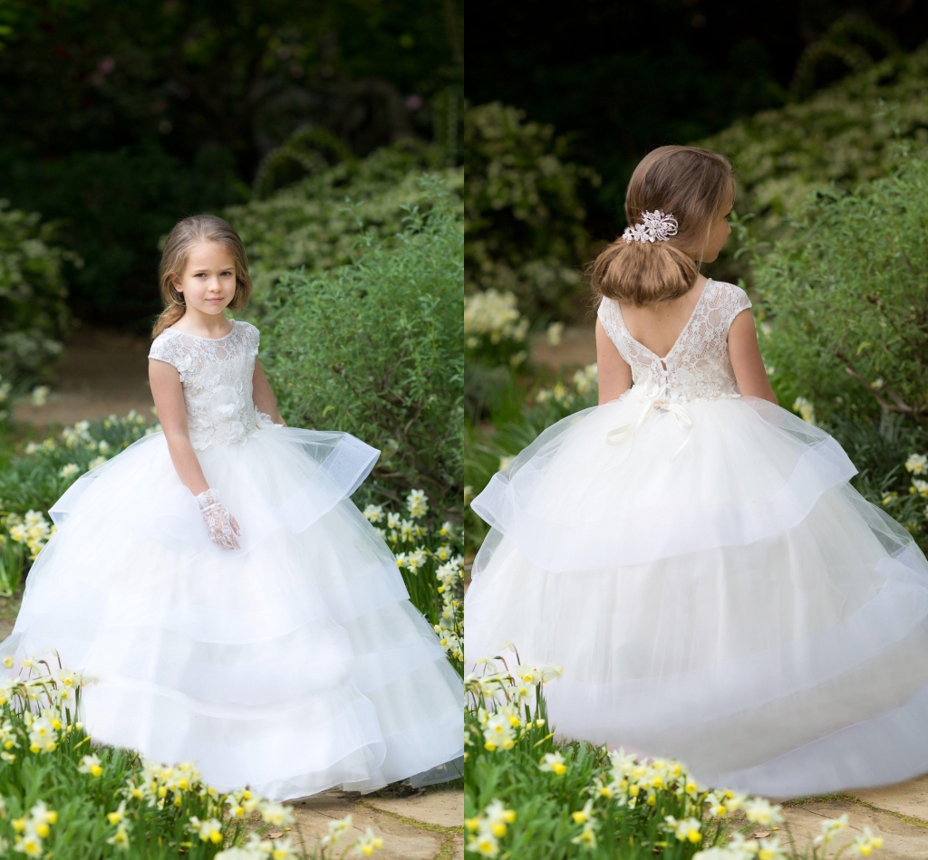 Fleur Fille Robe Blanche Te Enfants Tements Tutu Robes En Tulle Pour Ans Costume Bal Mariage A494