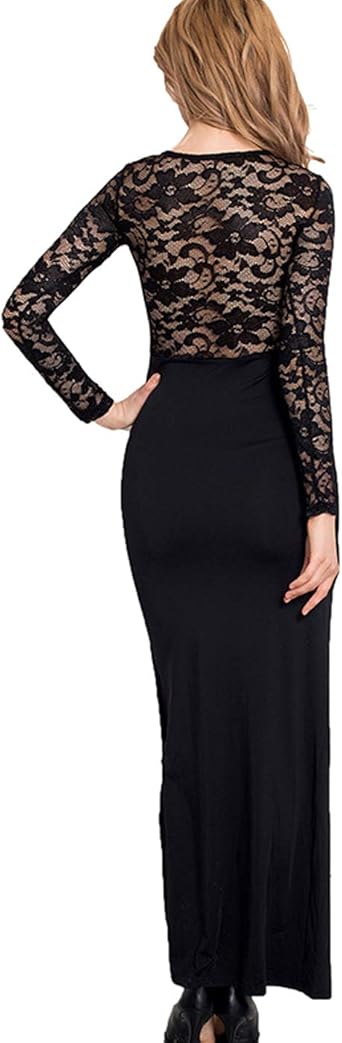 Jltph Femmes Robe Longue Elegant Perspective Dentelle Moulante Avec Splitting Ourlet Col Rond Robes A Manches Longues Maxi Robe De Soiree Cocktail Mariage Amazon Fr Vetements Et Accessoires