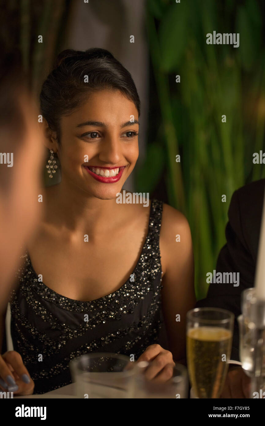 Singapour Portrait De Femme En Robe De Soiree Souriant A Diner Photo Stock Alamy