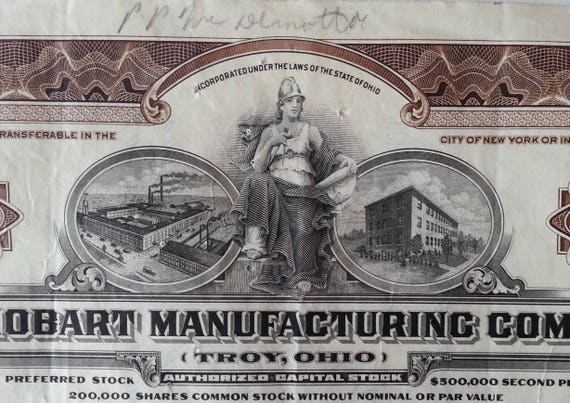 The Hobart Manufacturing Co Troy Ohio Common Stock Etsy