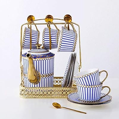 Qjghy Ensemble De The Apres Midi En Ceramique The Tasse A Cafe Menage Theiere Ensemble Complet De Theiere De Luxe Set 6 Tasses Service Pour 6 Avec Soucoupe Theiere Cuillere A Cafe Panier