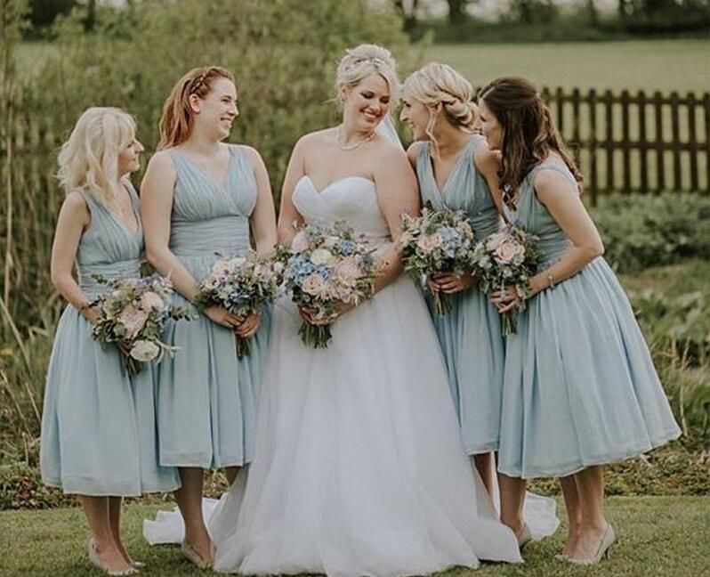 Acheter Glace Bleu Mousseline De Soie Plage Robes De Demoiselle Dhonneur Longueur De The Robe De Soiree De Mariage Dentelle Jusqua Midi Robes Robe De Dama De Honra De 54 78 Du
