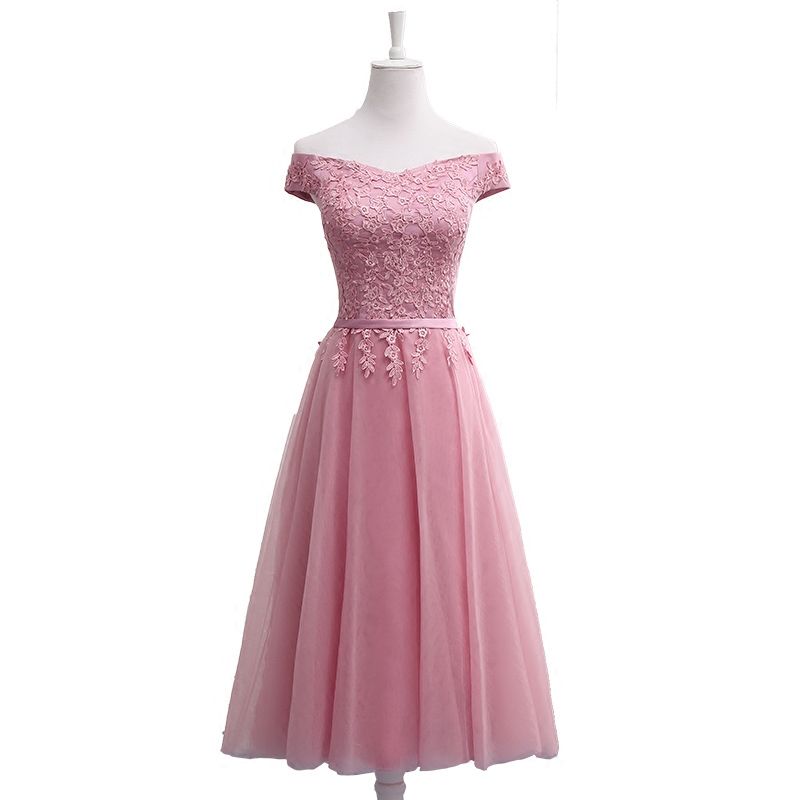 Acheter Tulle The Longueur Robes De Demoiselle Dhonneur Avec Appliques De Lacet 2019 Midi Robe De Fete De Mariage Dentelle Up Abito Damigella Longueur 116cm De 31 68 Du Sarawedding Dhgate Com
