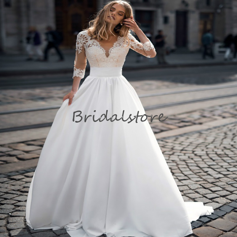 Robe De Mariee Appliques Tulle Dentelle Avec Manches Jardin En Plein Air Photo 2 Photos Couple Mariage Photo Mariage Idee Photo Mariage