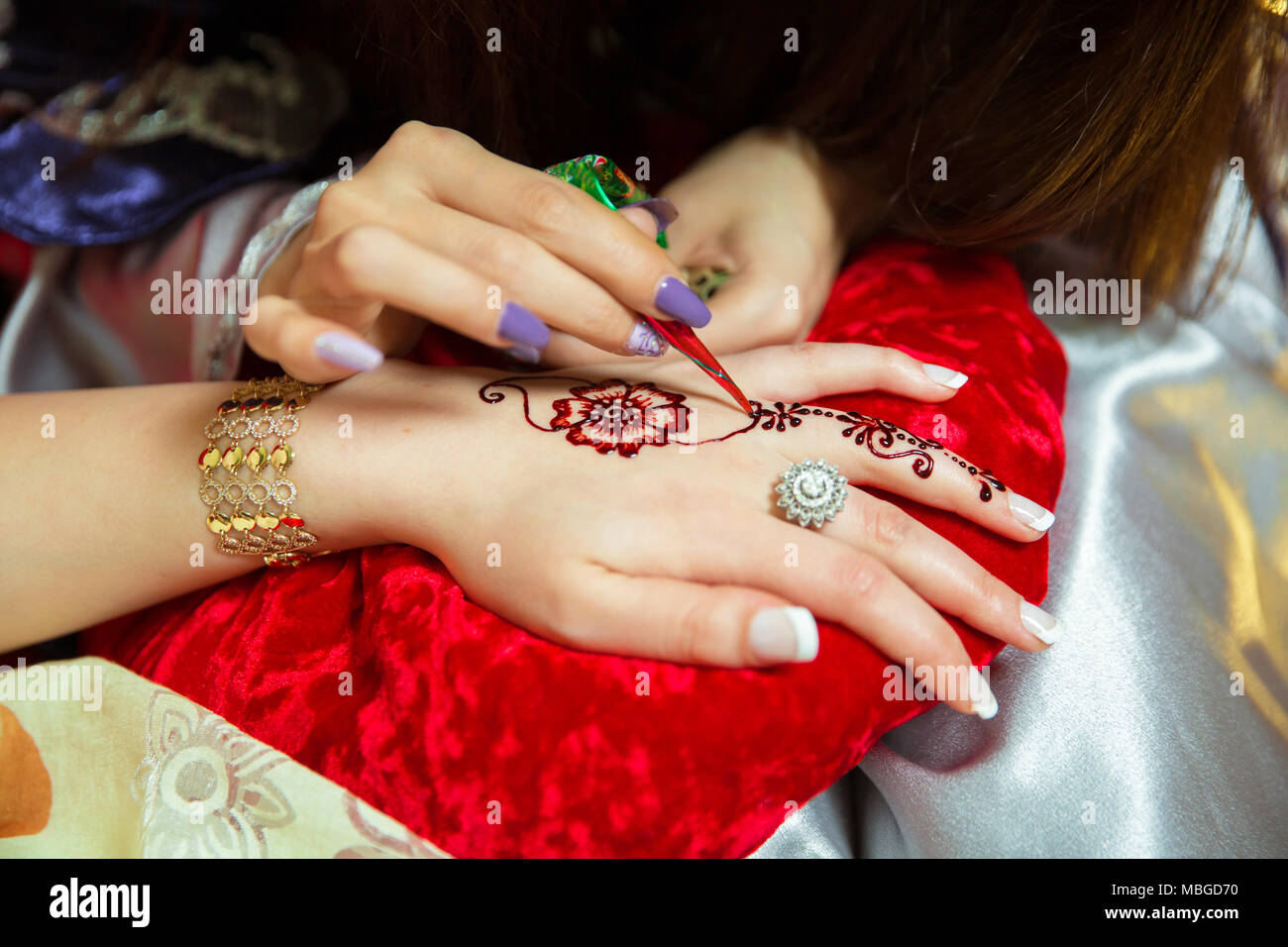 Henna Tattoo Design Les Femmes L Application Fleurs Tatouage Au Henne Sur Les Mains Des Femmes