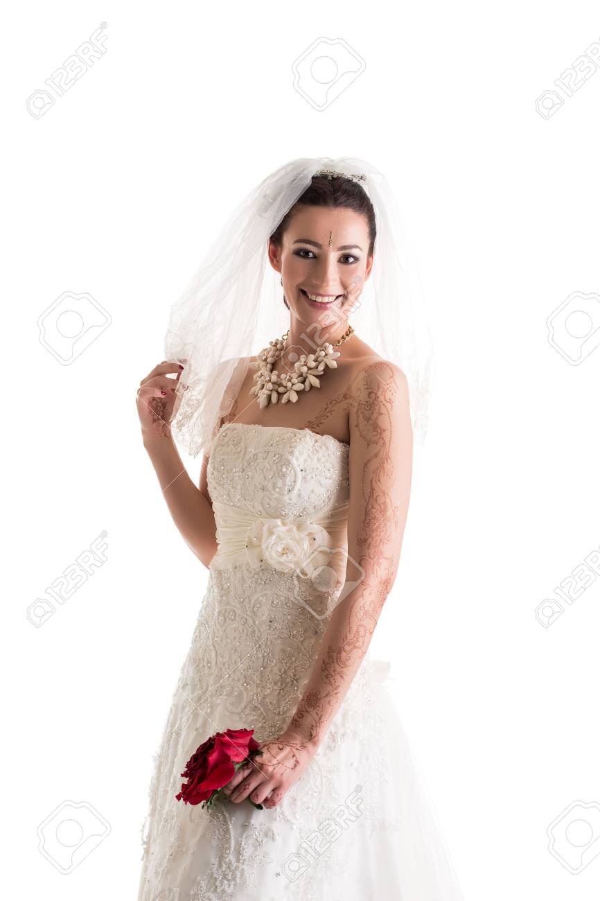 Notion De Tendance Mariee Moderne Heureux Avec Mehendi Isole Sur Blanc Banque D Images Et Photos Libres De Droits Image 39438812