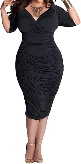 Pink Queen Robe Moulante A Col En V Pour Femme Taille Plus Grande Amazon Ca Vetements Et Accessoires