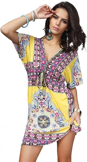 Robe D Ete Robe De Plage Ample Blouse Taille Plus Sexy V Profond Pour Femme Xxl Jaune Amazon Fr Vetements Et Accessoires