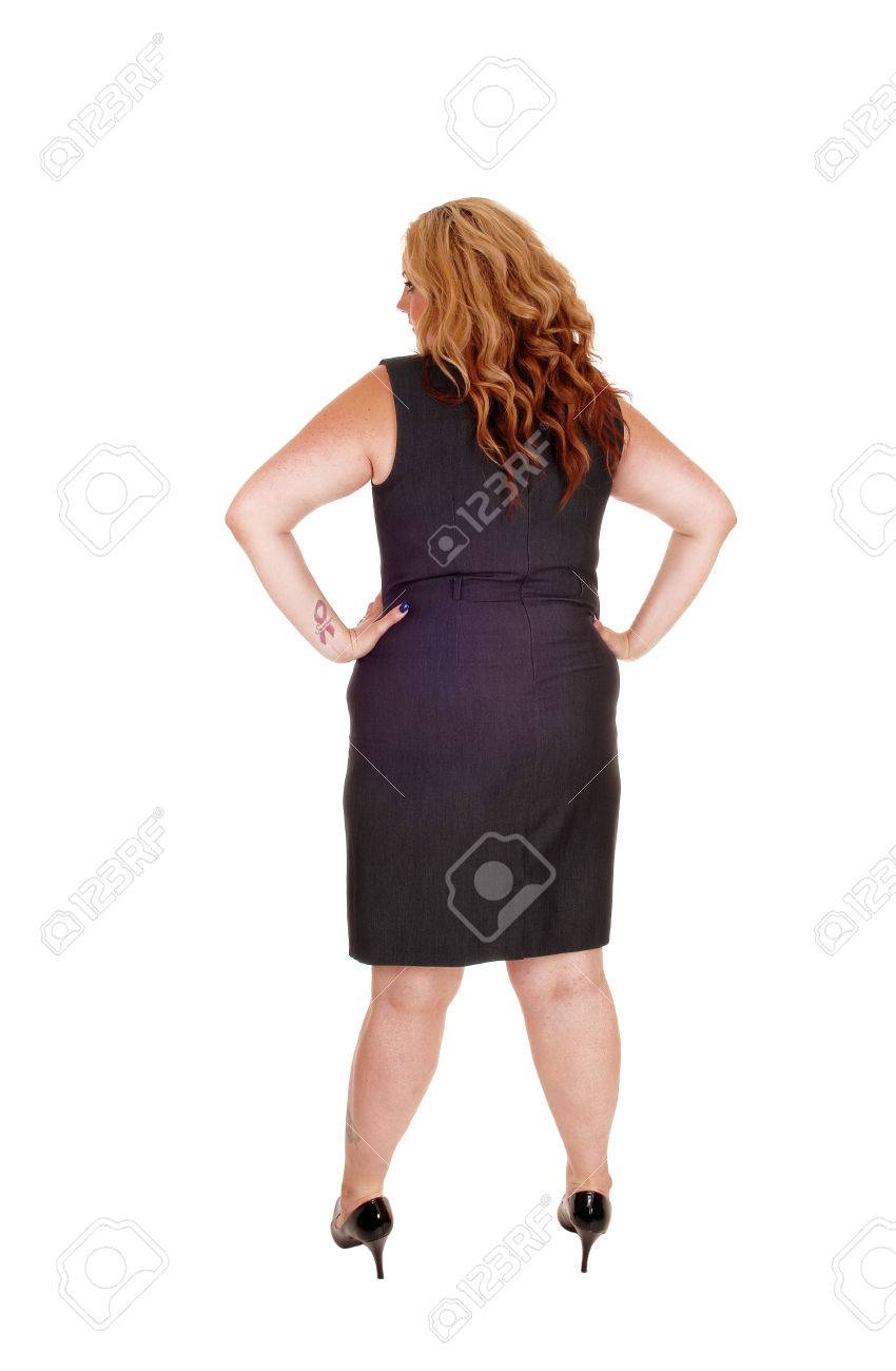 Une Image Pleine Longueur D Une Femme De Taille Plus Dans Une Robe Grise Debout A L Arriere Isole Pour Fond Blanc Banque D Images Et Photos Libres De Droits Image 43327009