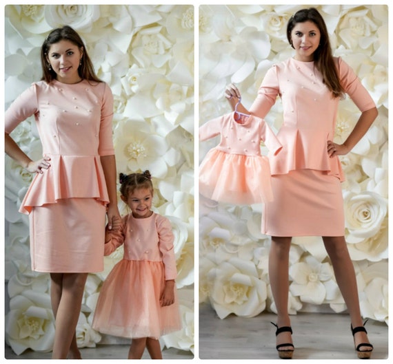 Mere Fille Assortie Robes De Jersey De Couleur Peche Etsy