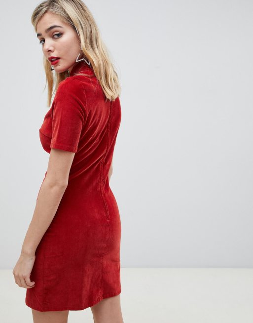 Asos Design Robe Courte En Velours Cotele Rouille Asos