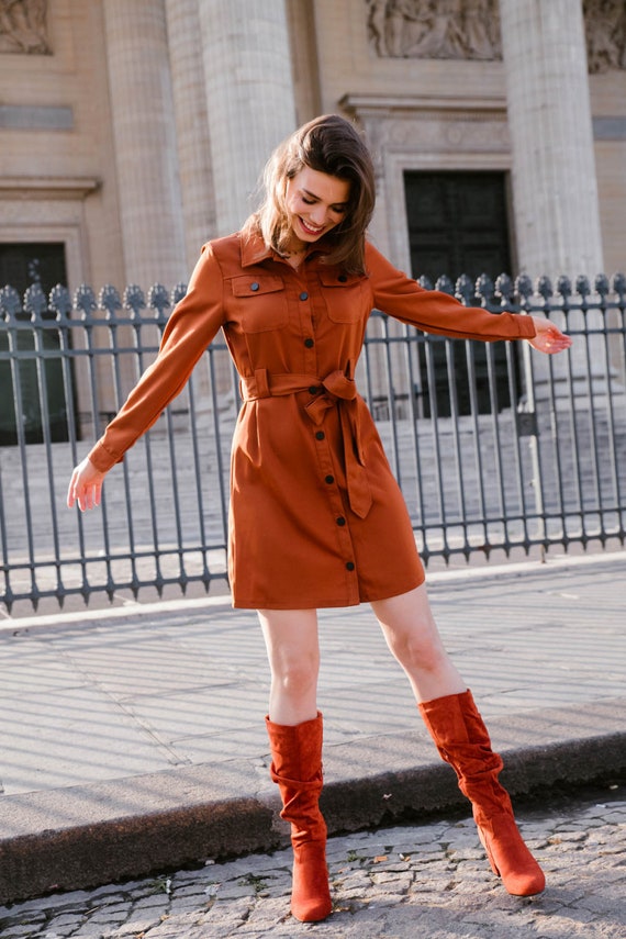 Robe Rouille Mi Longue 2 Atode Vetement Femme Chic Classe Et Eco Responsable Made In France