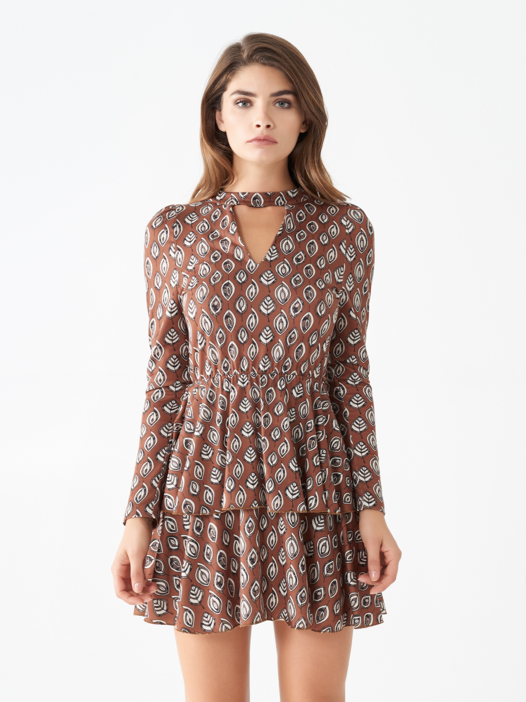Robe Manches Longues Avec Broderie Pour Femme Couleur Rouille Pret A Porter Et Accessoires