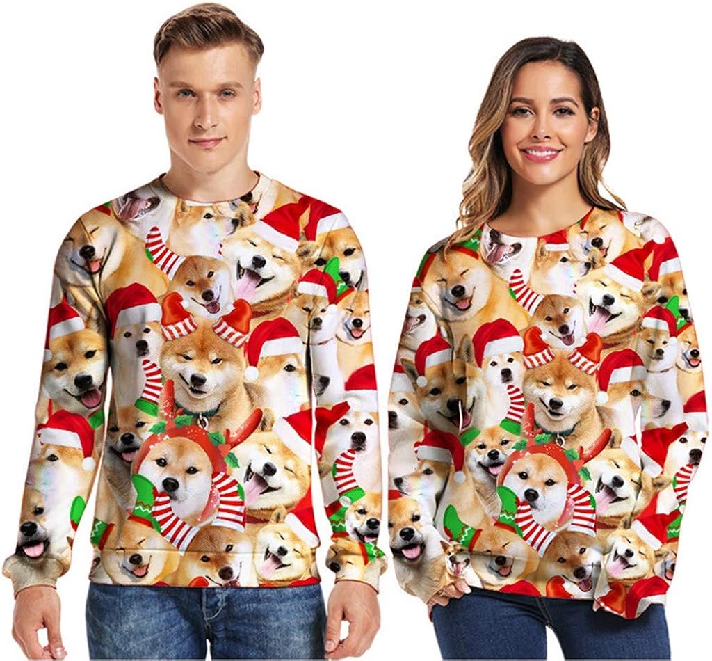 Chapeau De Noel 3d Chiens De Noel Shiba Inu Pour Sweat Shirt Fete Cadeau De Noel S 3xl Yyhuli Pull De Noel Robe De Noel Pour Hommes Et Femmes Homme T Shirts Polos Et Chemises