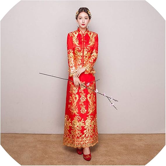 Trouek Red Hanfu Qipao Robe De Mariage Chinoise Fine Pour Femme Dore Rouge X Large Amazon Fr Vetements Et Accessoires