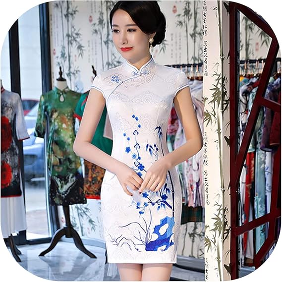 Daily Cheongsam Robe Chinoise A Manches Courtes Pour Mariage Qipao Mini Robeise Vestido Oriental Robes Qi Pao Amazon Ca Vetements Et Accessoires