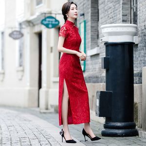 Acheter Rouge Cheongsam Robe Sexy Dentelle De Mariage Qipao Femmes Costume De Nouvel An Chinois Traditionnel Robe De Soiree De Style Oriental Qi Pao C18122701 De 44 13 Du Shen8407 Dhgate Com