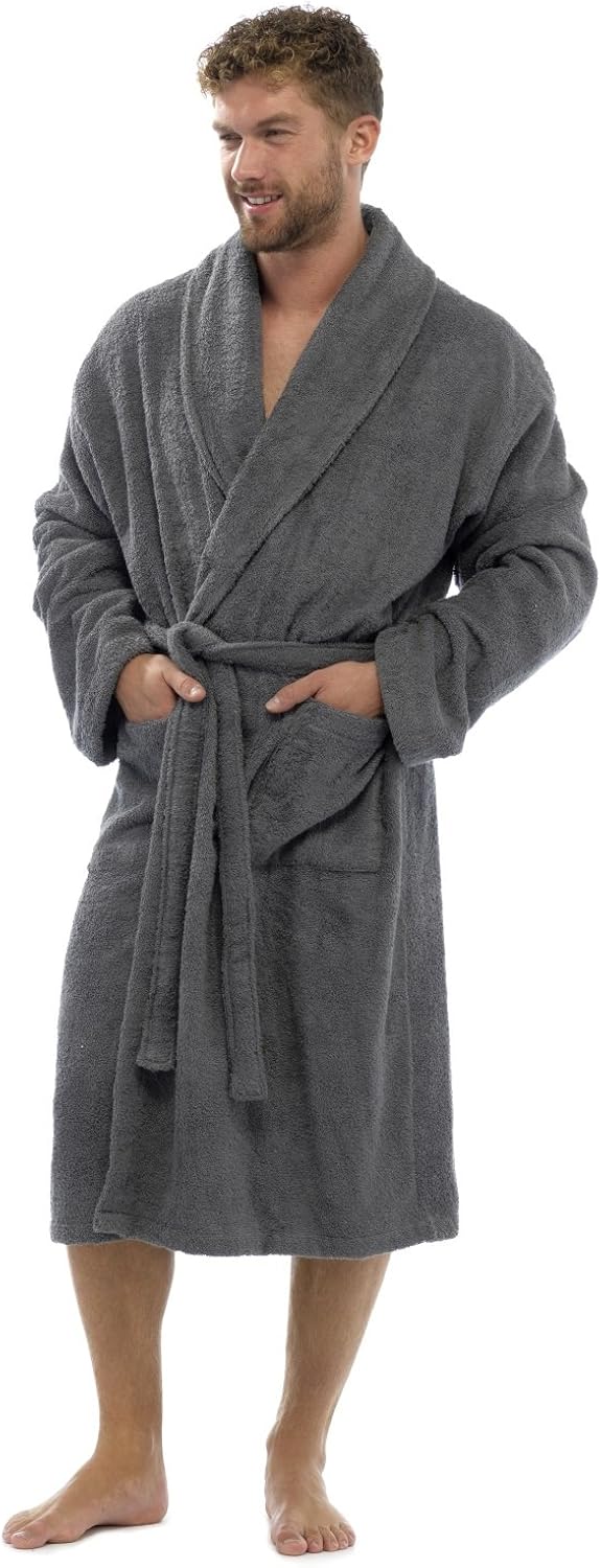 Messieurs Hommes Pure 100 Coton De Luxe Serviette Eponge Bain Robe Habillage Toge Robe De Chambre Ceinture Poches Pyjama Vetement De Loisirs Gracons Taille Uk M Xl Gris Medium Large