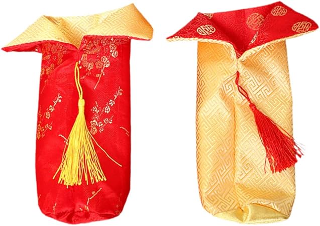 Amosfun 2pcs Chinois Bouteille De Vin Couverture Chine Robe Sacs De Vin Cheongsam Pour Le Nouvel An Decorations De Noel Hotel Bar Decor De Table Rouge Et Or Amazon Fr Cuisine Maison