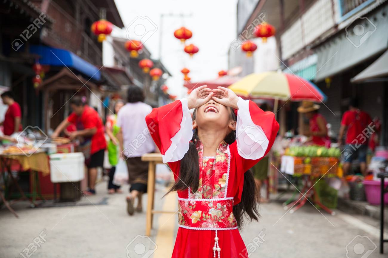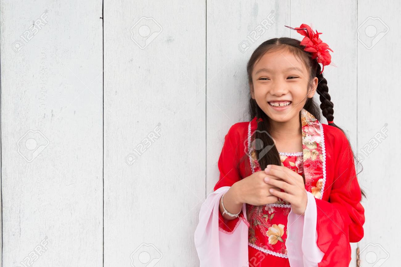 Jeune Fille Chinoise En Robe Rouge Posant Pour La Celebration Du Nouvel An Lunaire Banque D Images Et Photos Libres De Droits Image 94811774