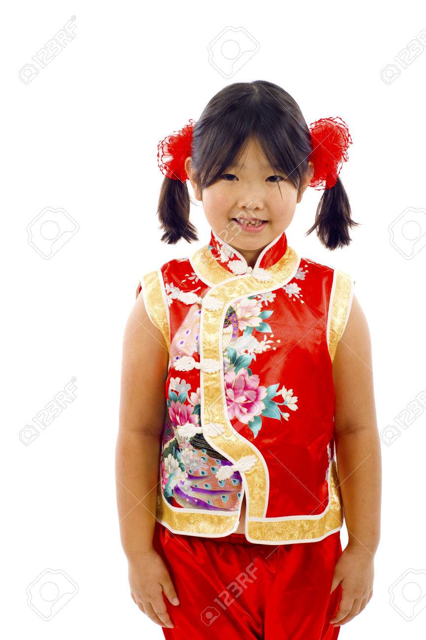 Fillette Chinoise Portant Une Nouvelle Robe Rouge Pour Celebrer Le Nouvel An Chinois Isole Sur Blanc Banque D Images Et Photos Libres De Droits Image 41431962