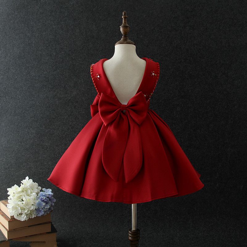 Acheter Filles Robe De Soiree Nouveaux Enfants Perles Grands Arcs Princesse Robes Enfants Backless Robe Rouge Filles De Noel Robe Enfants Robe De Bal De Mariage A00005 De 84 86 Du Summervivi