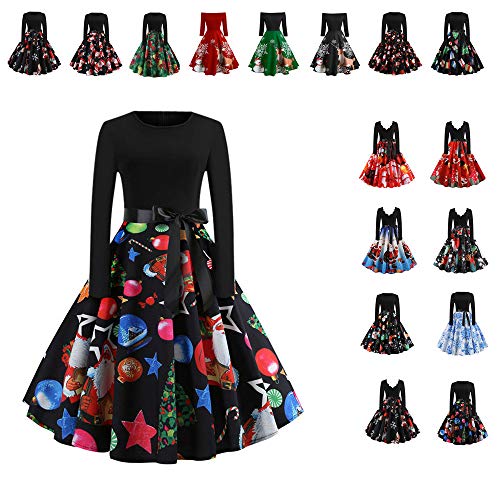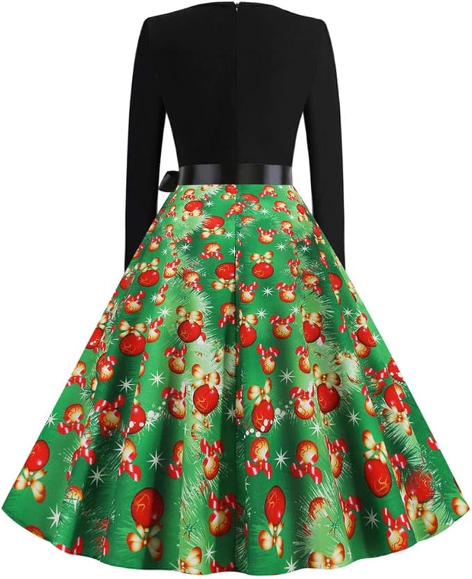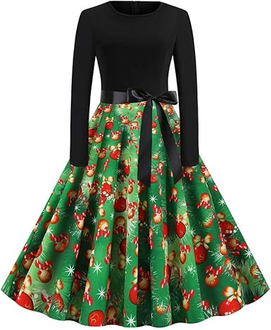 Jennifer Haywood Robe De Noel Femme Sexy Women Manche Longue O Cou Impression Ancien La Mode Robe Soir Fete Les Robes Christmas Dress Cocktail Robe De Soiree Audrey Hepburn Le Style Robe Amazon Fr