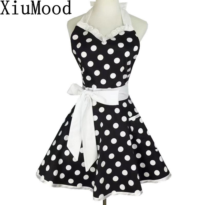 Acheter Xiumood Retro Mignonne Sexy Serveur Tablier Robe Avec Poche Coton Blanc Dentelle Noire Polka Cuisine Cuisine Chef Tabliers De Cuisine Pour Femme De 14 9 Du Vicki98 Dhgate Com