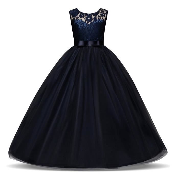 Robe Soiree Fille Sans Manches Dentelle Florale Fete Anniversaire De 6 A 14 Ans Noir Achat Vente Robe Cdiscount