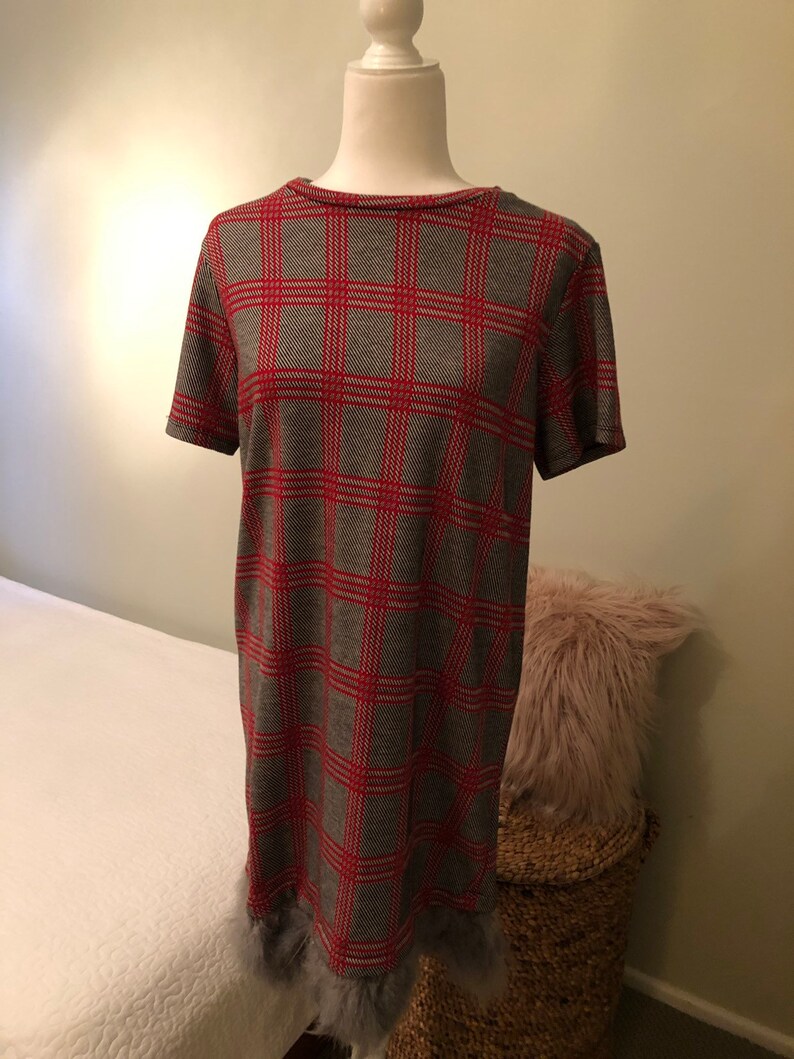 Robe De Garniture De Plume De Plaid De Zara Etsy