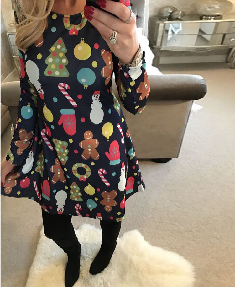Mode Pour Dames Femmes A Manches Longues Impression Fete De Noel Robe Trapeze Noel Hm2816 Achat Vente Robe 2009571033118 Cdiscount