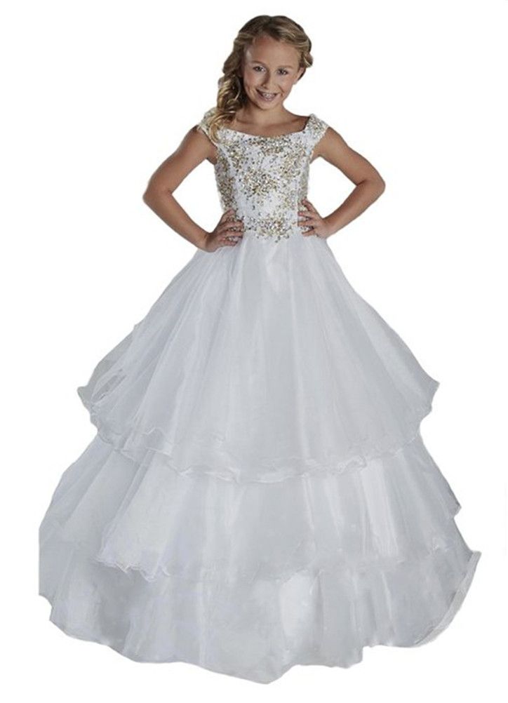Acheter Filles De Mariage Fete De Mariage Robe De Princesse Princesse Premiere Communion Robe De Soiree Pailletee Blanche Enfant Volants Robe De Soiree De 58 03 Du Pageantshop Dhgate Com