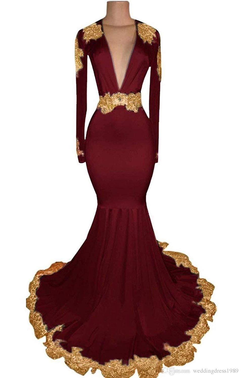 Acheter Sirene Bordeaux Rose Robes De Bal 2019 Manches Longues Appliques Or Keyhole Retour Robe De Soiree Robe De Soiree Formelle De 90 48 Du Sanique Dhgate Com