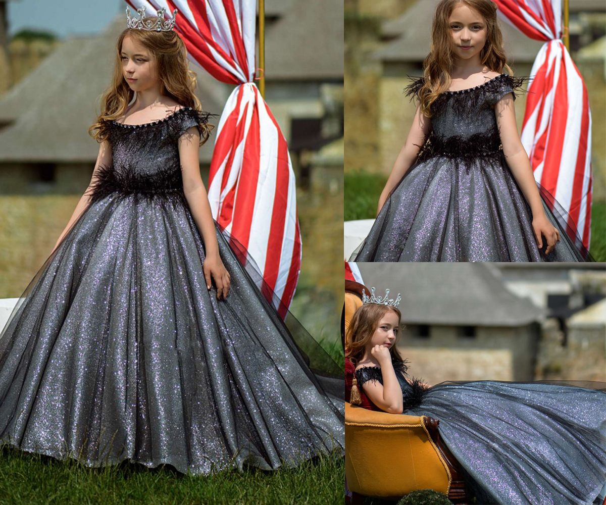 Acheter Black Shiny Longue Traine Fleurit Robes Fille Robes Pour La Fete Et Le Mariage Pageant Soiree Fete Danniversaire Fete Robes De 82 3 Du Portsvy Dhgate Com