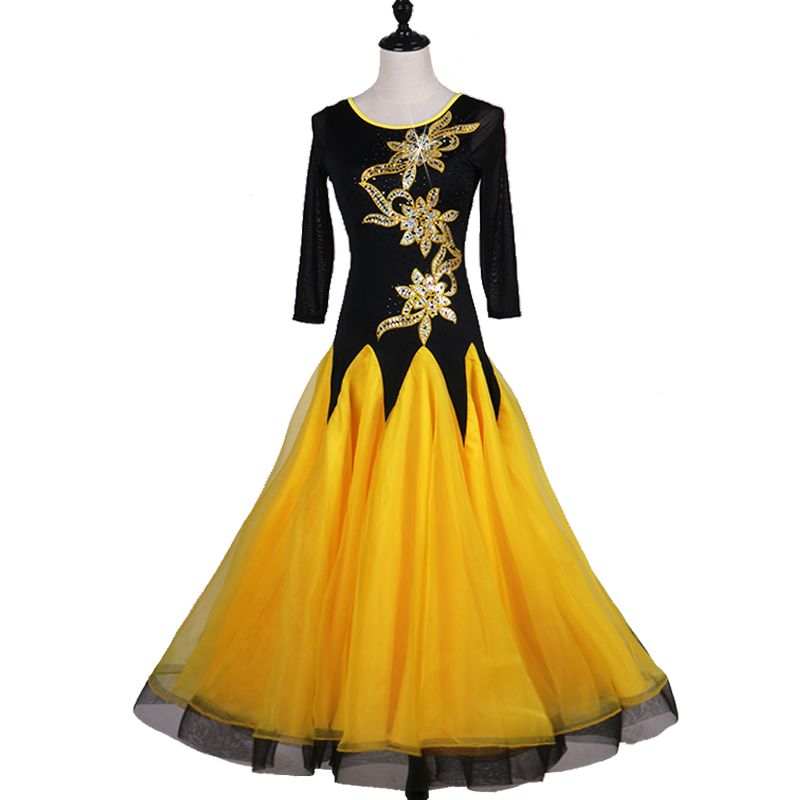 Acheter Robe De Bal Standard Robe De Danse De Salon Robe De Flamenco Jaune Avec De Gros Paillettes De 152 01 Du Clothfirst Dhgate Com