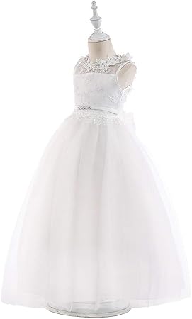 Lxua Robe Pour Enfants Robe De Mariee Pour Fille Avec Dentelle Et Jupe Longue Pour Fille Robe Imprimee Pour Enfants Couleur Blanc Taille 150cm Amazon Fr Cuisine Maison
