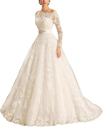 Lyjfsz 7 Robe De Mariee Robe De Mariee Pour Femmes Avec Manches En Dentelle Princesse Parfaite Trainee Grande Et Longue Traine En Dentelle Tulle Blanche Amazon Fr Sports Et Loisirs