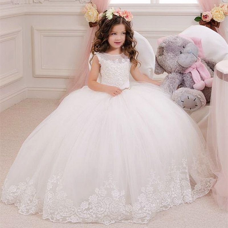 Acheter Dentelle Robe De Bal Petite Fleur De Mariee Filles Robes Pour La Fete De Mariage Princesse A Volants Arc Longueur De Plancher Tulle Pageant Communion Robes De 36 64 Du Guoguo888