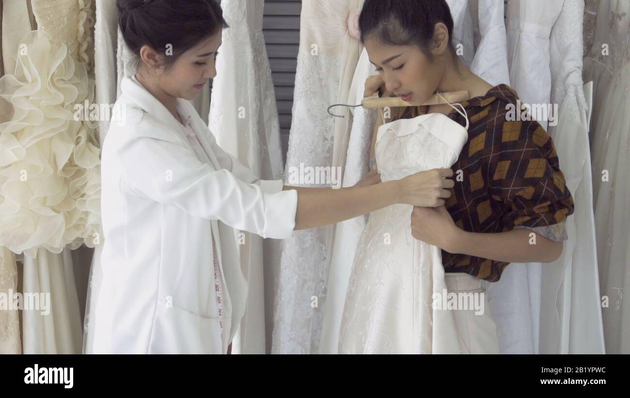 Future Mariee Client Parlant Avec Magasin De Mariage Commercant Pour Acheter La Robe De Mariage Et Les Accessoires Pour Sa Prochaine Ceremonie De Mariage Photo Stock Alamy